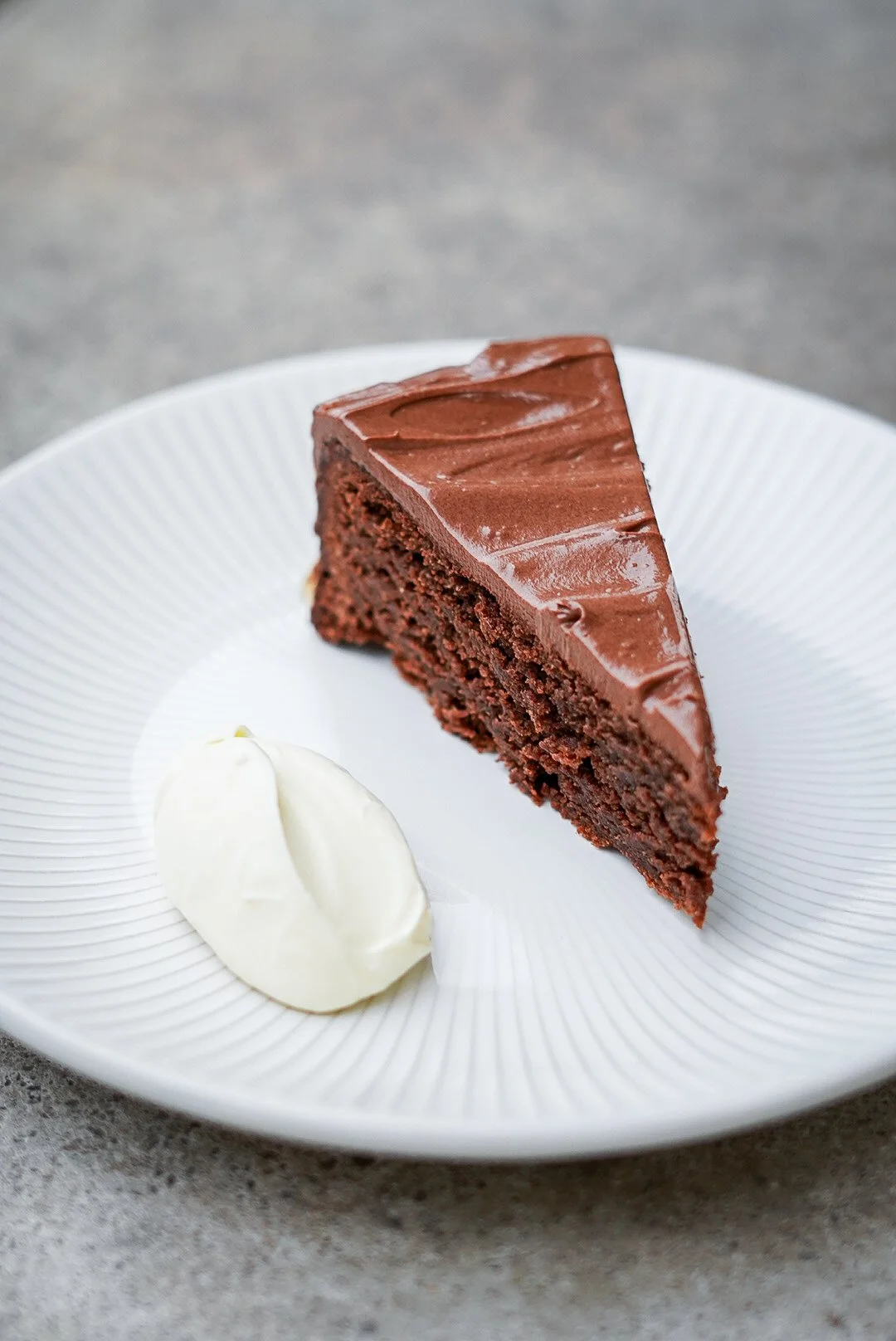 When you take the first bite the centre of the cake is wonderfully smooth and creamy and surprisingly it was so incredibly light. The chocolate flavour was perfect, not too rich and not too sweet. And the hint of almond extract just perfumes your palate and ties all the flavours beautifully together. It is decedent, it is warming, it fills your heart and soul with happiness, it is perfect on its own or with a dollop of double cream. And the best part is it can be eaten straight from the fridge or at room temperature. Pair it with a tea or coffee (or a cheeky glass of red) and I promise it will make you feel on top of the world. And honestly, what more do you want in life?